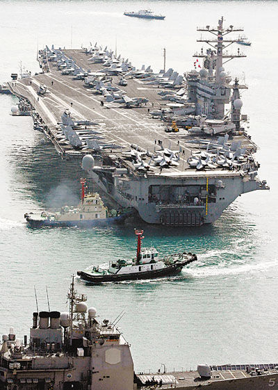 香港文匯報訊 (記者 軼瑋 北京報道) 美國海軍「尼米茲」號核動力航母日前出現在南中國海水域,由於此時正值中國與菲律賓海軍在南沙群島仁愛礁對峙的敏感時期,「尼米茲」航母的到來更受外界關注。中國人民大學國際關係學院教授時殷弘認為,美軍此舉無非是給菲律賓「壯膽」抗衡中國,料將加大美國在南海問題上與中國的矛盾。