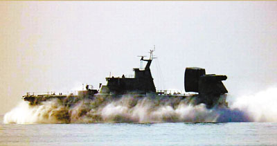 ■中國購買的首艘「歐洲野牛」型大型氣墊船在經過一個月的海上航行後,於24日抵達廣州。圖為海試中的「歐洲野牛」。 資料圖片