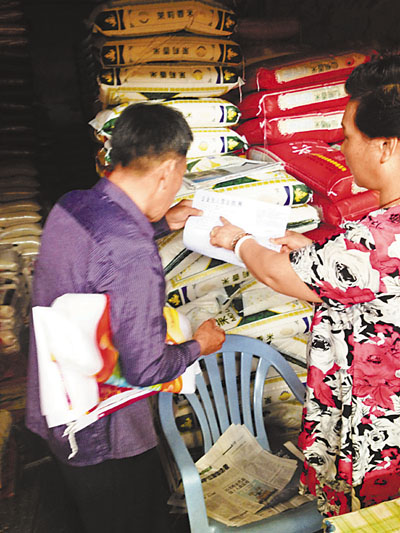 ■受毒米事件影響,廣州市民紛紛轉向超市購米。採購時,也嚴格核對「不合格名單」。敖敏輝 攝