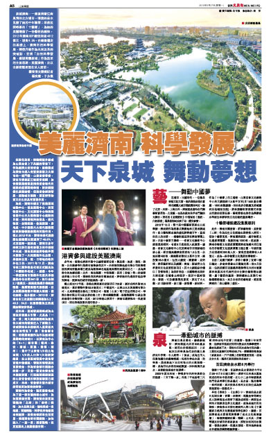 泉城濟南,一座流淌著江南風情的北方城市。噴湧的泉水見證了她的千年繁華;即將拉開帷幕的「十藝節」,為她的美麗增添了一份藝術的韻律。2012年濟南GDP總值突破4812億元,增長9.5%。在總量穩定的基礎上,濟南市把科學發展、轉型升級作為未來改革的突破點,並將「加快科學發展、建設美麗泉城」作為改革的主旨思路。美麗濟南,正以全新姿態呈現在世人面前。 ■香港文匯報記者 楊奕霞、於永傑