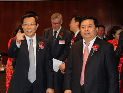 ■兗礦集團董事長王信(右),兗礦集團總經理、兗州煤業董事長李位民(左)參加兗礦澳洲公司上市慶典儀式
