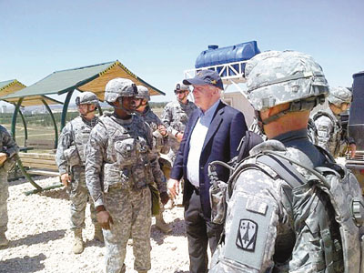 ■麥凱恩從土耳其進入敘國,圖為他訪問土軍基地。美聯社