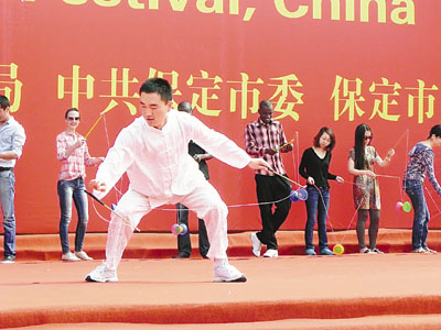 香港文匯報訊 (記者 賈麗華 保定報道)「三利杯」2013中國保定第六屆國際空竹藝術節日前在河北省保定舉行,來自美國、俄羅斯、韓國等30多個國家和地區的6,000名空竹愛好者參加本屆藝術節。