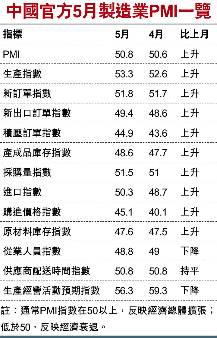 ¤¤°ê©x¤è5¤ë»s³y·~PMI¤@Äý (¹Ï)