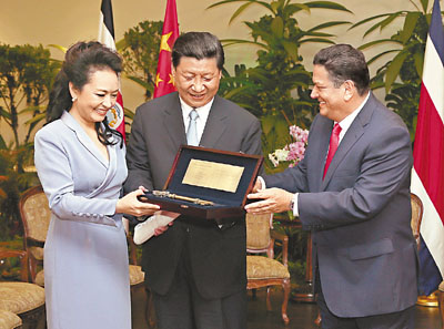 香港文匯報訊 據中通社報道,國家主席習近平前日在聖何塞同哥斯達黎加總統欽奇利亞會談後,兩國元首共同會見了記者。此前,在兩國元首舉行會談時,習近平表示,中哥建交雖然只有6年時間,但兩國關係取得了長足發展。事實證明,中哥關係完全可以成為不同規模、不同國情國家友好合作的典範。