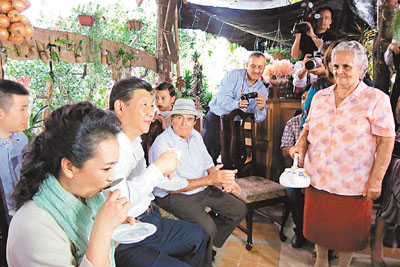 正在哥國進行國事訪問的中國國家主席習近平和夫人彭麗媛前日走訪了當地農戶薩莫拉一家。