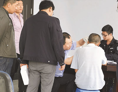 ■技術人員正對遇難者家屬進行DNA採樣。 中新社