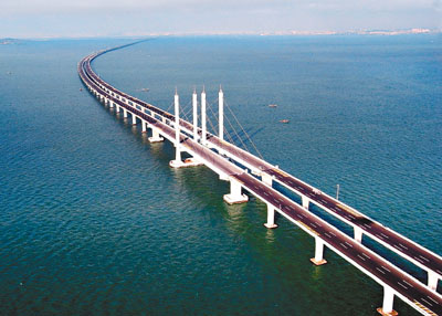 全長36.48公里的膠州灣大橋是目前世界最長的跨海大橋,連接青島、紅島、黃島,於2011年6月30日建成通車。國際橋樑大會每年舉辦一次,橋樑技術獎共設7項,喬治.理查德森獎被譽為橋樑界的諾貝爾獎,每年在世界範圍內評選一項在設計、建造、科研等領域取得傑出成就的橋樑工程。