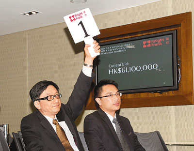 ■拍賣會由萊坊負責,持1號牌的九建以底價1.059億投得2項目。張偉民 攝