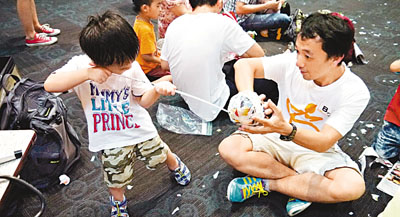 ■透過簡單的材料如雜誌、膠袋、紙箱、樹葉等,爸爸們學會了如何與子女開心玩遊戲,享受親子時刻。