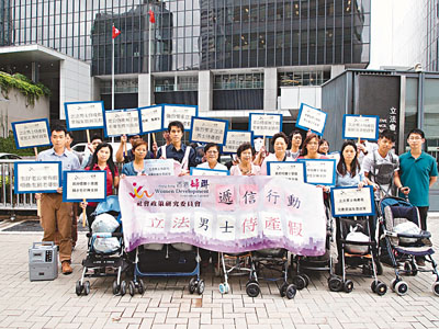 ■香港婦聯代表推BB車到政府總部請願,要求盡快立法落實侍產假。