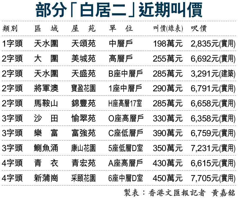 部分「白居二」近期叫價