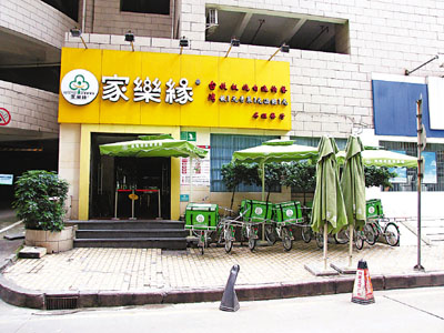 記者走訪發現祭出「一元飯菜湯粥」的快餐品牌店,在周邊1,000米商圈至少有3家,其中開業多年的台灣快餐品牌「家樂緣」就在同一社區名門大廈停車場入口,兩者相距僅300米。