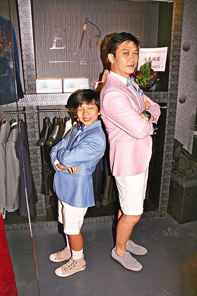 昨日禮服店請來車淑梅擔任司儀,原來錢小豪經淑梅姐介紹下認識店主,雙方一拍即合,兩父子擔任店舖代言人。二人穿上色彩鮮艷的禮服示人,兒子更即場表演跳江南style和米高積遜的moonwalk。笑問兒子有沒有代言人酬勞?錢小豪笑道:「有謚捸A他有我所有的愛錫。」至於兒子有否遺傳他學武天分?他說:「我現在有拳館,有帶過他去玩,但他興趣不大,反而喜歡跳舞,現在他去表演仲多過我的工作。」
