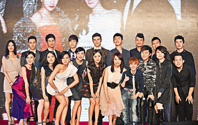 ■《小時代》主創及主題曲主唱蘇打綠出席北京首映。新華社