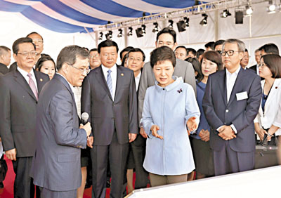 ■朴槿惠參觀位於西安高新區的三星電子項目工地。路透社