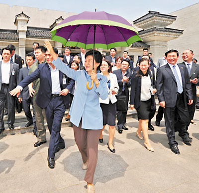 ■朴槿惠親切地向遊客揮手。 新華社
