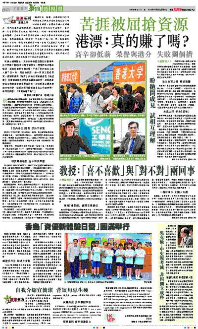 編者的話:港漂,主要指近10多年間到香港求學及畢業後留港生活工作的內地生群體。在漂泊與融入之間遊走,他們每每有著複雜感受;隨著近年兩地交往中出現了一些矛盾,大專學界也多次掀起「反內地生」議題,由數年前抗議住宿機會受影響,至近日有網民集資登廣告,指責大學研究院招收過多內地生,並將其標籤為「搶書讀、爭工做」。這一切,對一眾港漂及相關人士來說,都是百般滋味在心頭。香港《文匯報》記者訪問了來自內地的本科生、研究生以及學者,將他們在港生活、學習、研究、教學的心底話和讀者分享;另外還有本地學者以數據和社會變遷,剖析內地生來港求學的現象及社會氣氛的變化,讓大家能以更廣闊的角度,檢視由港漂引伸的各個社會議題。