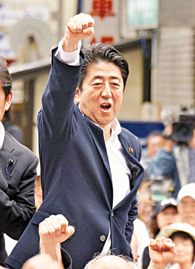 各黨黨魁昨日在各地街頭演講拉票。執政自民黨表示,將全力推進經濟政策。參院第一大黨民主黨則稱,將制訂政策增加國民收入、復甦經濟等。外界亦關注自民、公明黨、日本維新會及大家黨等席次能否佔2/3,達到提出修憲案的門檻。 ■新華社/中央社