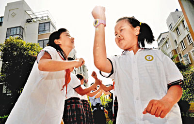 ■安徽省合肥市五里墩街道聯合轄區小學開展「防身技能培訓課」,預防校園性侵犯等惡性傷害事件發生。中新社