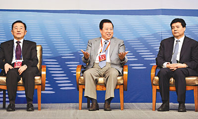 ■國家環境保護部部長周生賢(中)現場論道「生態文明」。 中新社