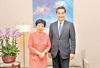香港文匯報訊(記者 鄭治祖)行政長官梁振英昨日下午在行政長官辦公室與訪港的世界衛生組織總幹事陳馮富珍會面,就雙方共同關心的課題交換意見。