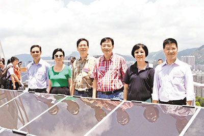 ■王國興(左四)率領立會房委會委員參觀公屋地盤,了解油麗h的太陽能光伏板運作。