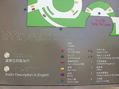 ■公園最新場地圖具備廣東話及盲人凸字說明功能。