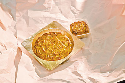 「十黃蓮蓉月餅王」(左)的份量較普通月餅巨型,廣受內地客戶歡迎。