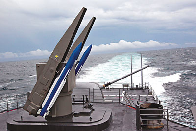 「標準二型」中程防空導彈,最大時速3.5馬赫,最大射程170公里。台海軍購入紀德艦時,也購入「標準二型」防空導彈,作為艦載防空武器,4艘紀德艦各可配備66枚「標準二型」防空導彈。