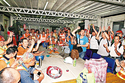 ■勞資雙方在昨晚談判取得突破,資方同意取消有關規定,工人歡迎結果。