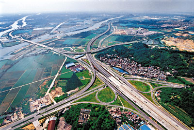 ■廣州南沙新區城市總體規劃提出要增加多條軌道交通線,構建「15-30-60」時效圈。圖為南沙區京珠高速南沙段亭角立交鳥瞰。