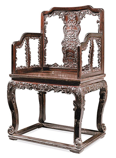 清乾隆 紫檀有束腰三彎腿帶托泥西番蓮紋大扶手椅 (2013-09-05) (圖)