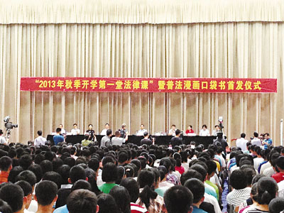香港文匯報訊( 記者 駱佳 鄭州報道)2日上午,河南高院組織「開學第一堂法律課」走進了鄭州市第七中學,並舉行了口袋法律漫畫書首發儀式。