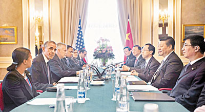 ■習近平在聖彼得堡與奧巴馬舉行會談。美聯社