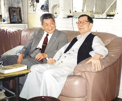 ■當年民革成立時,張克明(左)與李子誦一同當選中央候補委員。圖為兩人後期合照。本報記者北京傳真