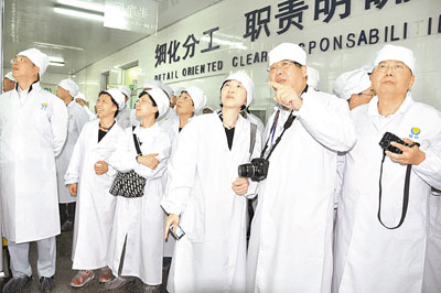 行程第三天,考察團參觀「皓月高新現代牧業產業園」。據介紹指,皓月集團年產屠宰肉牛達100萬隻、羊200萬隻,熟食製品10萬噸,飼料加工60萬噸,生化製品1,200噸,皮革加工50萬標張,堅持做好肉牛屠宰加工主業,充分發揮國家優勢及吉林地域資源優勢,確定建設循環經濟發展模式,形成畜牧養殖業、飼料加工業、食品加工業、生化製品業等6大主導產業。