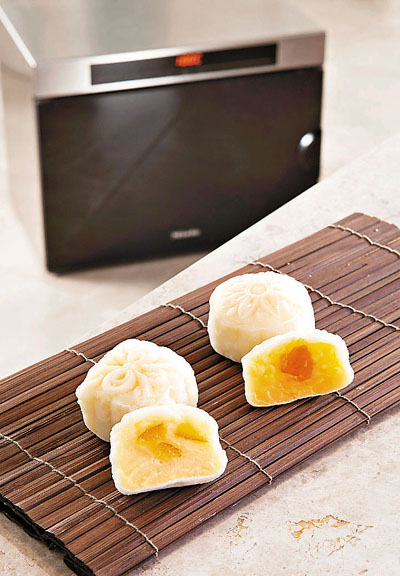冰皮月餅的材料及製作可謂出奇的簡單,利用Miele蒸爐內的多層蒸盤層架,只需數小時即可完成。