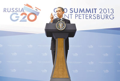 G20峰會前日通過《二十國集團領導人聖彼得堡宣言》,東道主俄羅斯總統普京在峰會閉幕後,介紹峰會對敘利亞等熱點問題的討論情況,但內容沒寫入峰會公報。美國與法國和日本等10國則於峰會期間簽署聯合聲明,譴責敘政府使用化武,支持美國和其他國家對禁止使用化武所作的努力,不過聲明並未直接承諾對攻敘提供軍事支援。 ■路透社/