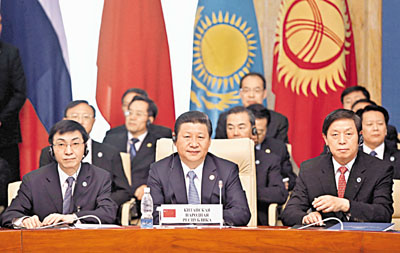 習近平在峰會大範圍會談時指出,當前國際和地區形勢複雜多變,「三股勢力」、販毒、跨國有組織犯罪嚴重威脅本地區安全穩定,受國際金融危機影響,各國經濟發展都不同程度地遇到困難。他提出四點主張:在涉及主權、安全、領土完整、政治制度、社會穩定、發展道路和模式等重大問題上相互支持、共同應對威脅和挑戰,維護成員國安全利益和發展利益;要共同維護地區安全穩定,完善執法安全合作體系,建立應對安全威脅和挑戰綜合中心,合力打擊「三股勢力」。