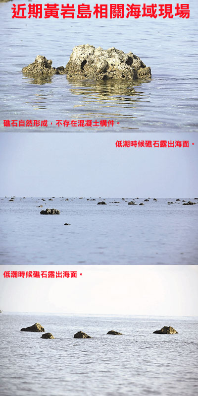 菲媒體還稱,中國在黃岩島附近建設混凝土塊據信是為搭建永久工程做準備。法新社11日的報道亦稱,菲方稱中國通過在黃岩島停靠船隻實際上有效地控制了島嶼,並阻止菲律賓漁民進入該海域。