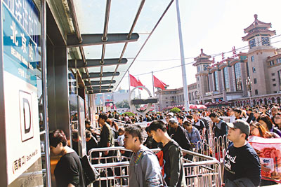 ■國慶長假即將到來,不少旅客抱怨,出行依舊「一票難求」。圖為去年國慶期間內地市民苦苦排隊購票的情境。資料圖片