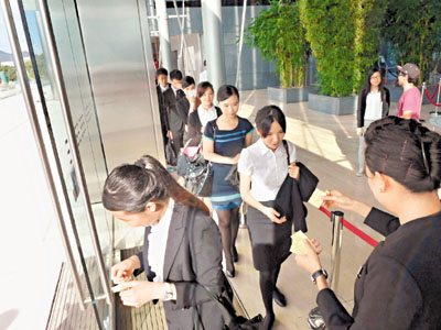 港龍航空昨日起一連三天,在赤P角港龍大廈舉辦機艙服務員招聘日,每天早上約8時30分開始派籌,每天派發300個。首天即場進行量度手臂延長度和英語聽寫筆試;通過後會即日進行第二階段小組討論及英語匯報面試;再次通過後會再擇日期進行最後一輪單獨面試。