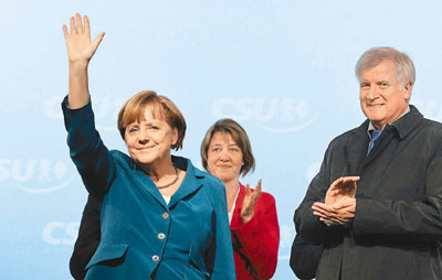 德國南部重要州份巴伐利亞昨日舉行州議會選舉,被視為下周德國大選的前哨戰。票站調查顯示,德國總理默克爾在當地的執政盟友基督教社會聯盟(CSU)贏得49%選票,取得議會絕對多數,為默克爾角逐連任打下強心針。