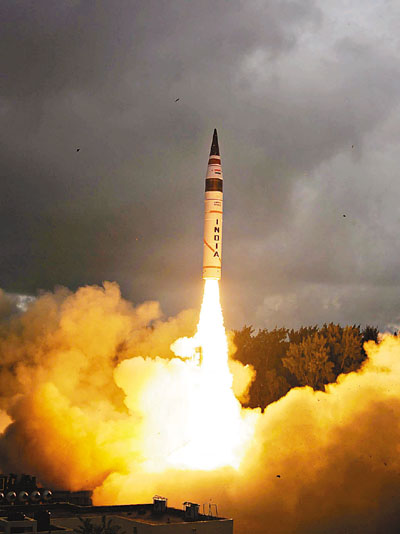 印度昨晨成功試射國產「烈火五」(Agni-V)長程彈道導彈,是自去年4月後第二次。導彈射程達5,000公里,涵蓋東歐及亞洲大部分地區,包括北京、上海、哈爾濱等中國城市。分析認為,印度旨在戰略威懾中國。
