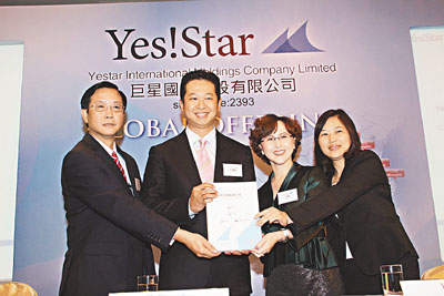 ■左起:Yes!Star巨星國際控股執行董事陳道強、主席及行政總裁何震發、執行董事王瑛、財務總監王泓。 張偉民 攝
