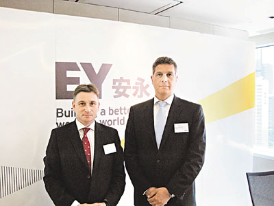 ■左起:安永亞太區糾紛協調及審查服務主管合夥人霍德傑、法證技術及披露服務合夥人陶森。 涂若奔 攝