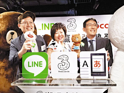 和電香港旗下3香港繼去年9月與即時通訊程式Whatsapp合作後,昨再夥拍一直尋求合作機會的LINE Corporation,推出增值計劃讓客戶不限數據流量無限任「LINE」,該增值服務視用戶月費計劃收取每月18元或28元。3香港亦與DoCoMo合作,豁免DoCoMo旗下「餐牌翻譯」應用程式的本地使用數據費用。
