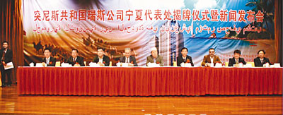 ■突尼斯共和國瑞斯公司代表處揭牌儀式暨新聞發佈會現場。本報銀川傳真