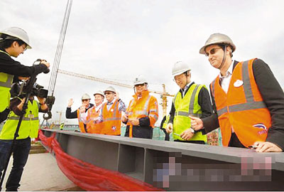 ■上海迪士尼樂園首根鋼柱安裝完成。 網上圖片